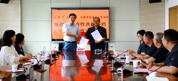 6月1日下午,学校与合肥市瑶海区人民法院廉政教育合作共建签约仪式在瑶海区人民法院9楼会议室举行。党委书记韩军与瑶海区人民法院党组书记、院长凌岩为博业体育(中国)官方网站-登录入口廉政教育基地揭牌。党委委员、纪委书记、监察专员宣扬与瑶海区人民法院党组副书记、副院长朱加强签订廉政教育合作共建协议。党委委员、人事处处长、戏剧学院党总支书记曹晓富,党委委员、宣传(统战)部部长王琍琍参加。