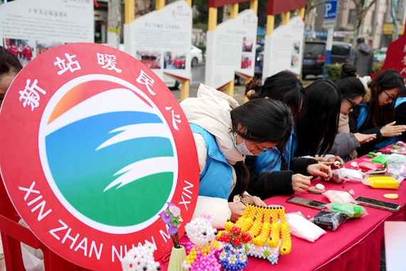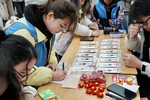 活动现场,同学们学习用剪纸细心雕琢雷锋同志的剪影,帮助售卖“随心动”手工班制作的串珠,筹集慈善资金服务辖区有需要的老年人,搭建志愿者招募服务台,发挥志愿者力量。