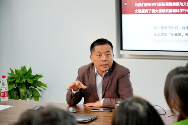 樊嘉禄从“充分认识提出习近平文化思想的重大意义”“深入学习领会习近平文化思想的丰富内涵”为切入口,带领同学们深入学习习近平文化思想。