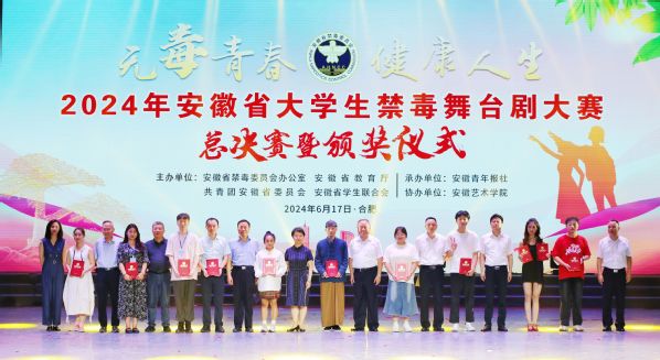 6月17日,“无毒青春,皖美人生”2024年安徽省大学生禁毒舞台剧大赛总决赛在我校举办。大赛由安徽省禁毒委员会办公室、安徽省教育厅、共青团安徽省委员会、安徽省学生联合会共同联合主办,我校和安徽青年报社承办。各主办单位领导、校党委书记韩军出席活动并观看比赛。经过精彩演绎和激烈角逐,我校选送的作品《青春不“毒”行》荣获金奖,戏剧学院学生李珺珩、叶子阳、方梅致远荣获最佳编剧奖。