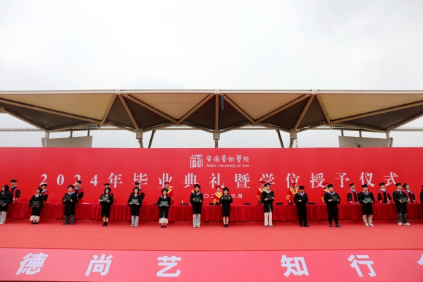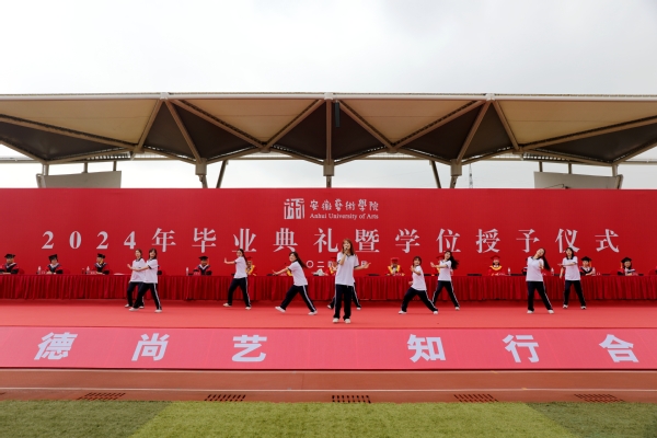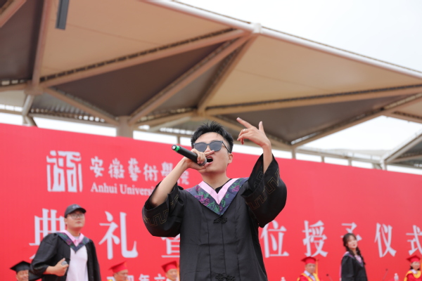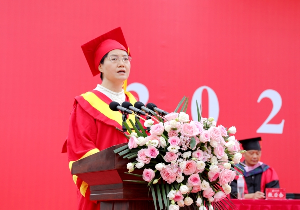 韩军在致辞中,用“逆锋起笔”“迎风敞开”回顾同学们和安艺同成长的四年,并寄语毕业生“坚守爱党爱国的情怀,养成终身学习的习惯,培育敢于创新的品格,磨炼坚韧不拔的毅力。眼里有光、心中有爱,坚定不移听党话、跟党走,做有理想、敢担当、能吃苦、肯奋斗的新时代好青年。”