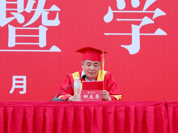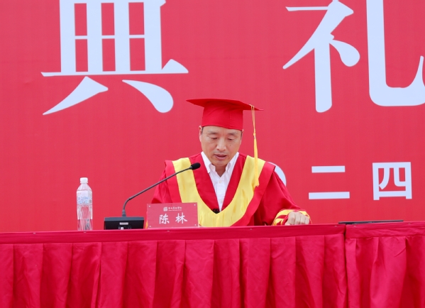 6月25日上午,我校2024年毕业典礼暨学位授予仪式在校运动场举行。校党委书记、学校学位评定委员会主任韩军博士,校党委委员、副校长、学位评定委员会副主任陈林教授,校党委委员、纪委书记程宗林,校党委委员、人事处处长、戏剧学院党总支书记曹晓富,校党委委员、组织部部长王琍琍教授出席典礼。各职能部门、二级学院负责人及一千余名毕业生、毕业生家长、毕业班辅导员、教师代表共同见证这一庄重而神圣的时刻。毕业典礼由校党委委员、副校长柳友荣主持。
