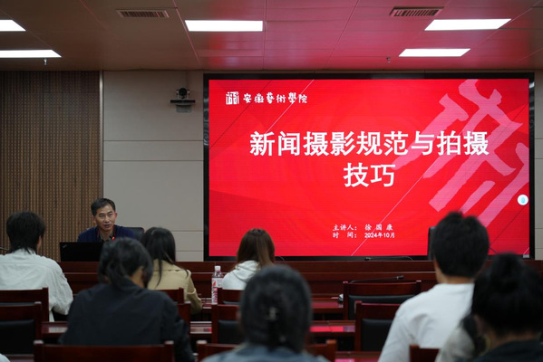 10月16日,由校党委宣传部举办的新闻宣传能力提升培训班第三讲在综合楼717会议室举行。此次讲座邀请安徽省摄影家协会副主席、安徽日报社视觉新闻中心首席记者徐国康主讲,主题为新闻摄影规范与拍摄技巧。校党委宣传部副部长尹广富主持讲座。