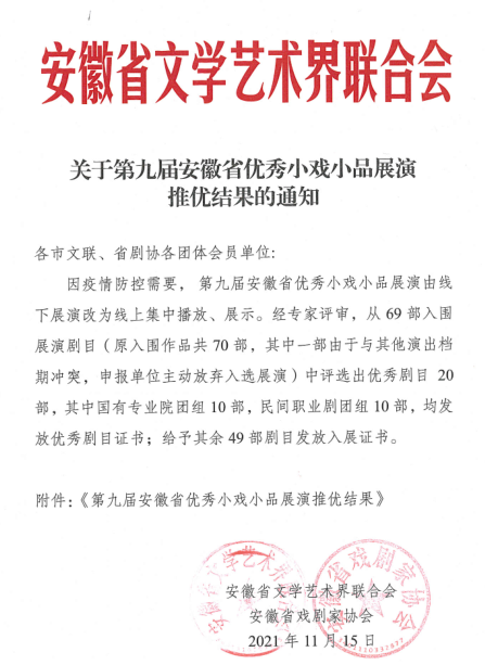 热烈祝贺我系选送黄梅戏《回家》荣获第九届安徽省优秀小戏小品展演“优秀剧目”称号