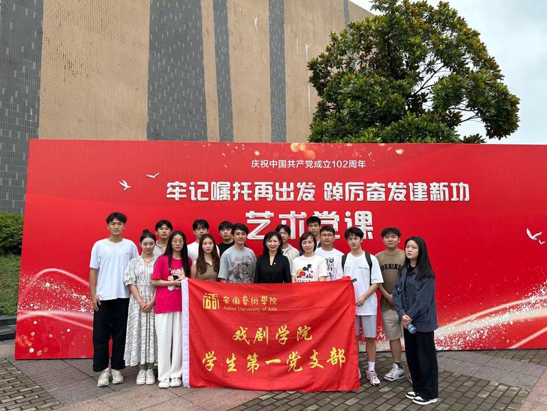 6月30日,戏剧学院第一学生党支部师生走进安徽大学,开展艺术党课——“牢记嘱托再出发,踔厉奋发建新功”的首次展演。由第一学生党支部师生党员共同创演的剧目《上岸》在安徽大学拉开了帷幕。