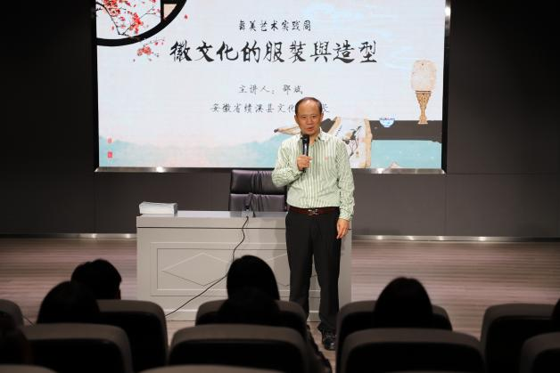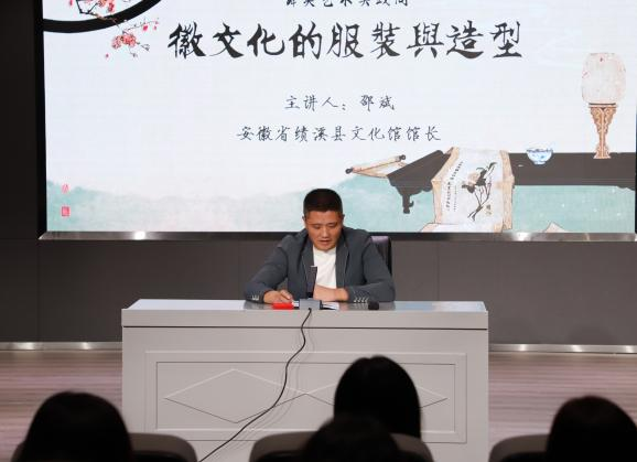 安徽省绩溪县文化馆馆长邵斌结合传统徽文化的现状,提出“守正创新”的传承原则,对于非物质文化遗产的传承与创新进行了深刻的解读。省级非物质文化传承人汪家宏先生结合自身多年徽剧演出经验,对于徽文化的服装与造型进行了多角度的解读。现场舞美专业学生积极提问,针对徽文化的传承现状与市场发展展开学术性的探讨。