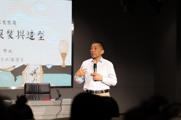 樊嘉禄做总结讲话,他对安徽省绩溪县文化馆的非遗项目给予充分认可,提出与安徽省绩溪县文化馆进一步合作的可行性方案,并对舞美专业学生的未来发展提出美好愿景。