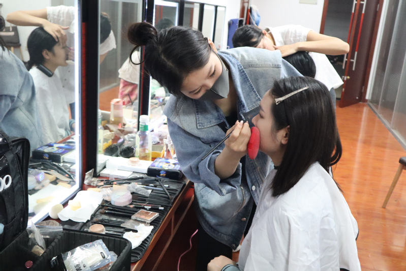 舞美师生参与金寨艺术党课化妆