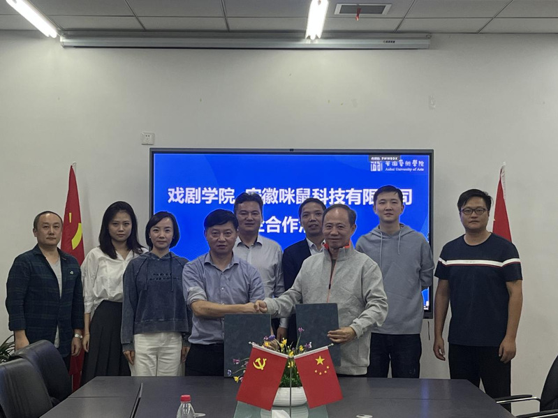 10月30日上午,戏剧学院与安徽咪鼠科技有限公司在戏剧楼320会议室召开合作交流会。校党委委员、人事处处长、戏剧学院党总支书记曹晓富、戏剧学院院长谢柏樑、戏剧学院党总支副书记曹磊、戏剧学院副院长张静等参加了交流会。