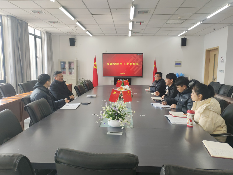 2024年2月25日,戏剧学院召开2024年新学期学工专题会议。院党总支书记曹晓富、党总支副书记曹磊、学管办副主任孔晓欣及全体辅导员参加会议。会议由孔晓欣主持。