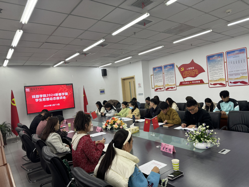 为进一步了解学生寒假生活,准确把握新学期学生思想动态,3月13日下午,戏剧学院在戏剧楼320会议室召开了2024年新春学期学生思想动态座谈会。校团委、学生处、教务处、国资处、马克思主义学院及保卫处相关老师出席会议,学院党总支副书记曹磊、学管办副主任、团总支书记孔晓欣及学院全体辅导员和学生代表参加了此次座谈会。座谈会由孔晓欣主持。