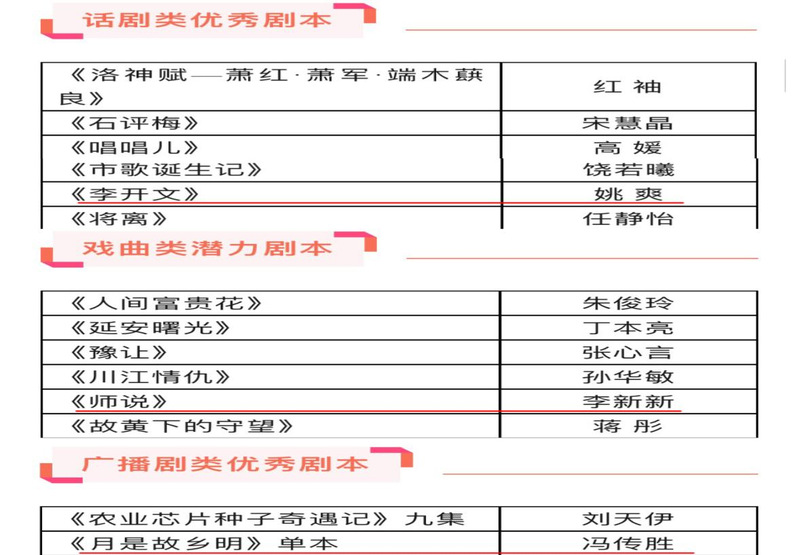 近日,“戏剧中国”2023年度作品征集推选活动文本结果揭晓。我院3名教师在此次活动中荣获佳绩,从全国700多部作品中脱颖而出。姚爽的剧本《李开文》获话剧类优秀剧本称号;冯传胜的剧本《月是故乡明》获广播剧类优秀剧本称号;李新新的剧本《师说》获戏曲类潜力剧本称号。