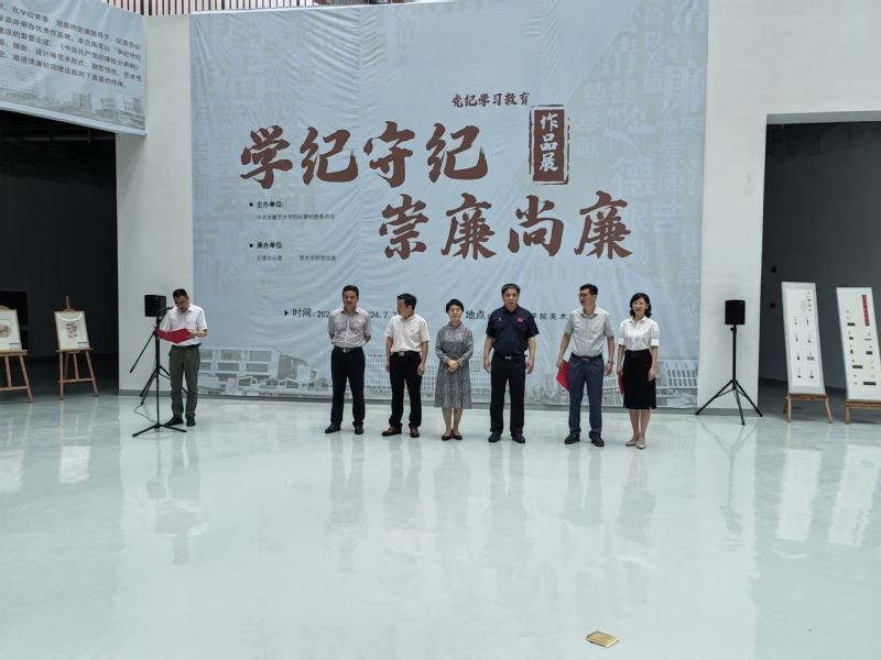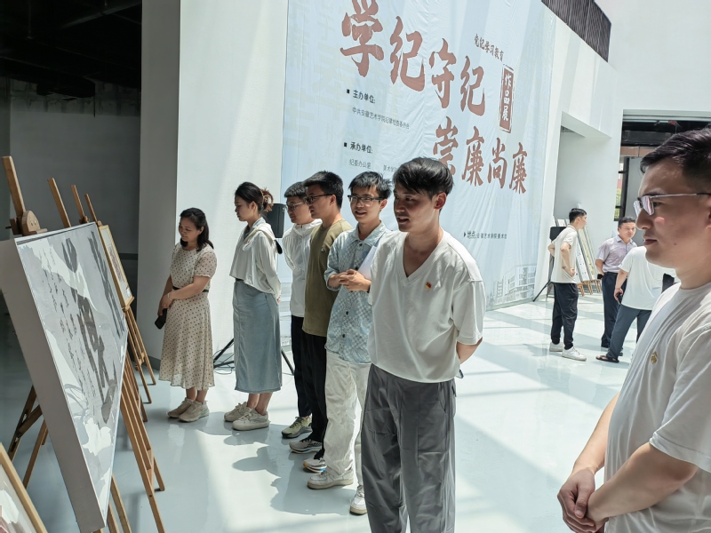 为推动党纪学习教育走深走实,7月1日上午,戏剧学院党总支参加了由学校纪委主办,纪委办公室、美术学院党总支承办的党纪学习教育作品展。校党委委员、人事处处长、戏剧学院党总支书记曹晓富、党总支副书记曹磊及学院全体教师党员参加此次党纪学习教育作品展。
