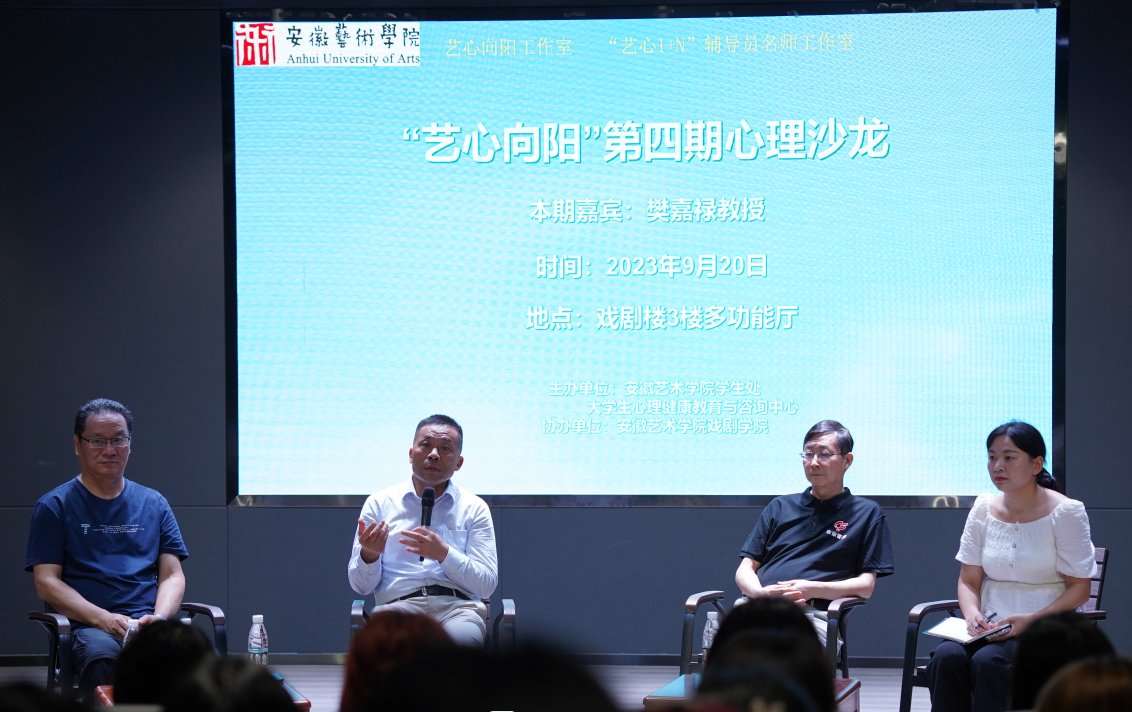 为进一步增进我校三全育人工作实效,推动心理健康教育工作走深走实,2023年9月20日,由博业体育(中国)官方网站-登录入口大学生心理健康教育与咨询中心主办、戏剧学院协办的第四期心理沙龙活动在戏剧楼报告厅举行。参加本次心理沙龙活动的有博业体育(中国)官方网站-登录入口党委副书记、校长樊嘉禄教授,戏剧学院党总支副书记曹磊老师、党委学生工作部(学生处)副处长王立仁老师,校心理健康教育与咨询中心副主任戴宇峰和舞蹈学院团总支书记贾方敏老师,活动在曹宇老师的主持中开场。