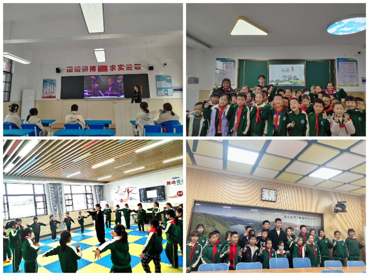 活动中,4名志愿者分别担任播音主持、音乐、舞蹈、美术“小老师”给佛子岭中学的学生们上了几节生动的艺术课程。播音课堂上,志愿者带领同学们进行基础的语音发声训练,学习少儿贯口和小小主持人模拟主持词,锻炼同学们的上台发言的胆量,培养同学们的自信心;音乐课堂上,志愿者向同学们介绍了交响乐及常见交响乐乐器,让同学们感知不同乐器的音色、发生原理,并通过音乐节奏训练的小游戏提高学生学习的主动性,让同学们在愉快的游戏中主动感受音乐、了解音乐;舞蹈课堂上,志愿者通过播放视频,通过PPT展示,让同学们更快地认识拉丁舞,通过一些入门步伐、手位和同学们喜欢的舞蹈进行教学,大家跟随志愿者的示范,认真地学习每一个动作,场面十分热烈;美术课堂上,志愿者通过让同学们选择自己喜欢的画作进行绘画指导,一对一进行素描指导,以实践练习和现场示范方式来培养同学们的创新思维和独立创作能力。在活动的最后阶段,志愿者们与同学们进行了活动交流与心得感受分享,并分发了提前准备好的小零食,在小朋友的欢呼中结束了此次教学活动。活动结束时,所有参与人员合影留念,记录下这美好的一刻。大家纷纷表示,这次活动不仅让他们对艺术类专业有所了解和认识,还学到了很多实用的专业技能。