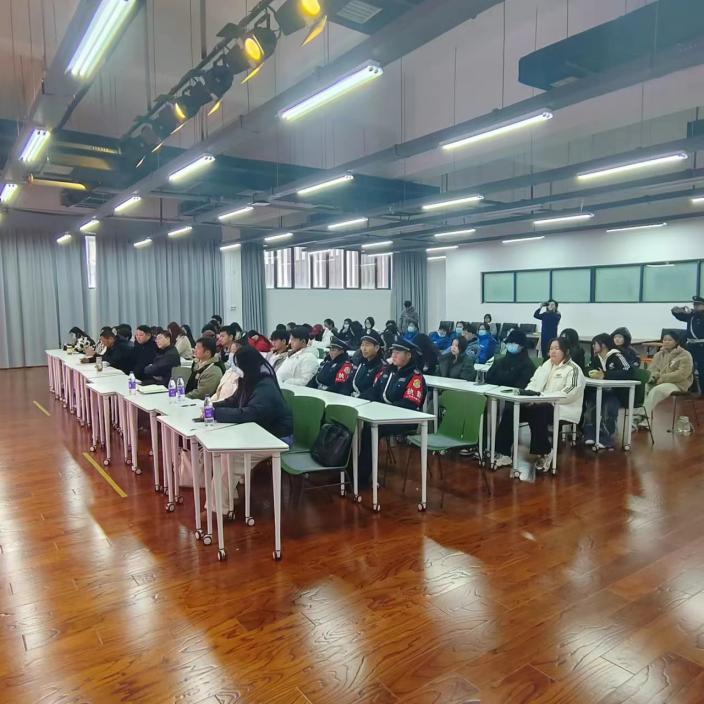 培训会上,新站高新区消防救援大队王守龙队长用生动形象的语言,详细介绍了火灾的危害、预防措施、火警拨打使用方法等消防安全知识。并以案例为依托,讲解突发事件的分类、应对策略和处置流程,使在场的师生对火灾事故有了更深刻的认识。