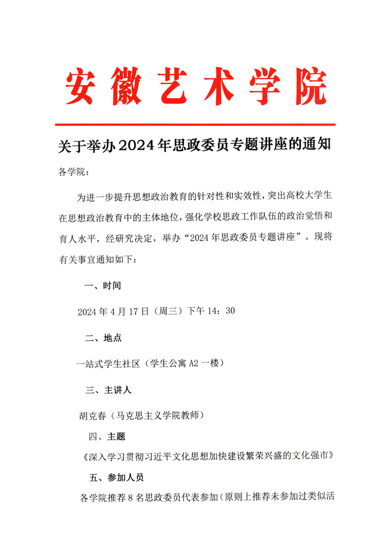 关于举办2024年思政委员专题讲座的通知