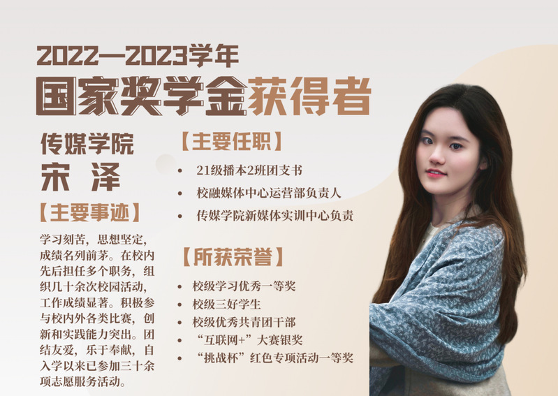 2022-2023学年国家奖学金获得者风采展示|传媒学院 宋泽