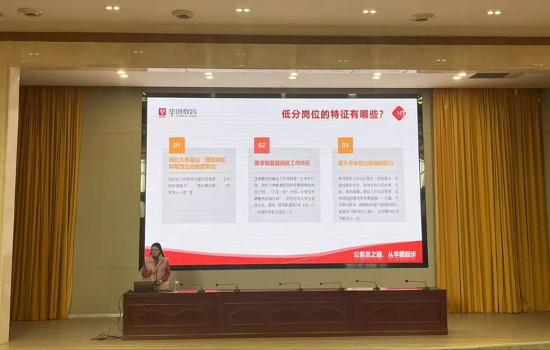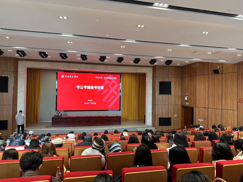 为帮助我校学子更好地了解考公考编的相关知识,提升备考水平。11月27日,我校于综合楼五楼报告厅成功举办考公考编指导讲座,本次讲座邀请了华图教育赵紫薇老师主讲,共有200余名学生参加讲座。