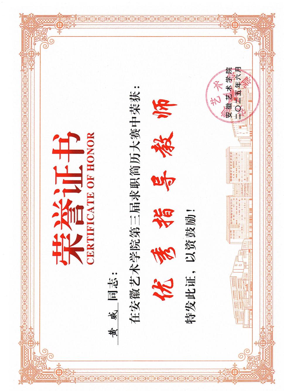 同时,黄威同志高度重视学生的职业生涯规划和就业指导工作。通过举办职业生涯规划讲座、简历制作与面试技巧培训,为学生提供全方位的就业服务。尤其针对设计行业的特点,引导学生树立正确的就业观、择业观,鼓励他们到基层一线、到需要创意设计的地方施展才华。所带学生王馨悦获得2025年博业体育(中国)官方网站-登录入口第三届简历大赛一等奖、黄思营获三等奖。黄威被评为博业体育(中国)官方网站-登录入口第三届简历大赛优秀指导教师。