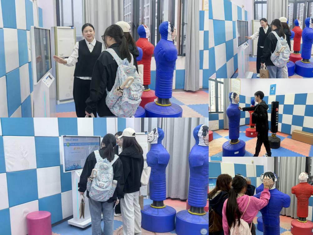 在压力宣泄体验室,蓝白相间的墙面营造出专业的氛围,同学们在心理咨询师的讲解下,了解智能宣泄设备的使用方法。大家纷纷尝试与宣泄人偶互动,通过合理的肢体释放,将学习生活中的压力转化为动力。智能设备实时记录并分析情绪数据,让同学们直观地看到自己的情绪变化,在趣味与科学的结合中,掌握了健康的压力宣泄方式,以更轻松的心态面对大学生活的挑战。