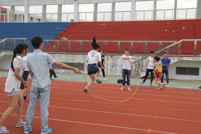 在随后开展的拔河、跳大绳、撕名牌、踢毽子、俯卧撑和呼啦圈等六个项目的比赛中,参赛队员们精神抖擞,尽情享受比赛的每一个激情时刻,啦啦队队员们齐声呐喊,热情高涨,整个操场变成了欢乐的海洋。