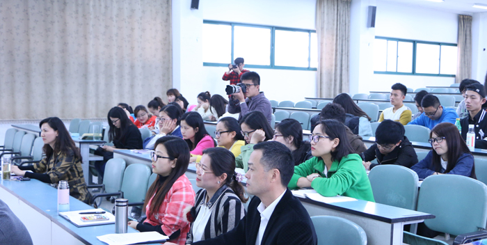 4月27日下午,南京艺术学院电影电视学院副院长董蓓副教授,应我院新闻播音系邀请,在第三阶梯教室做了题为《感受——开启朗诵艺术大门的钥匙》的精彩讲座。讲座由系主任助理陈静宇副教授主持。