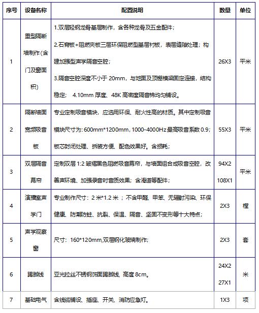 1.项目内容:新闻播音系广播电视实训室声学及功能房设计制作项目