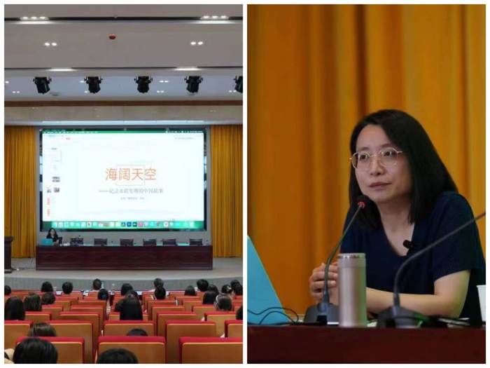 吴斯以其代表作《难忘的蘑菇云》《严凤英》《中国文房四宝》和《八月桂花遍地开》等纪录片为例,阐述从业以来的创作经历和创作初期面对的困难。讲座围绕纪录片的整体构思和心得技巧,从选题、情感、创新、拍摄技巧等四个维度深刻阐述了纪录片创优的经验和路径。她勉励同学们心怀创新精神,秉持开放视野,创作出更多更好的作品。
