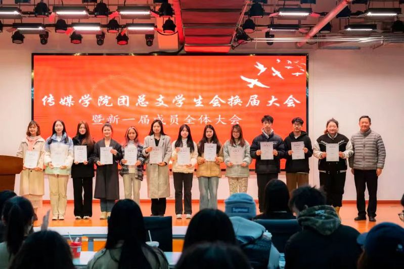 11月14日,传媒学院团总支学生会换届大会暨新一届成员全体大会在大学生活动中心举行,传媒学院党总支副书记张雷雷,团总支书记马悦,团总支副书记刘欣慰出席会议。