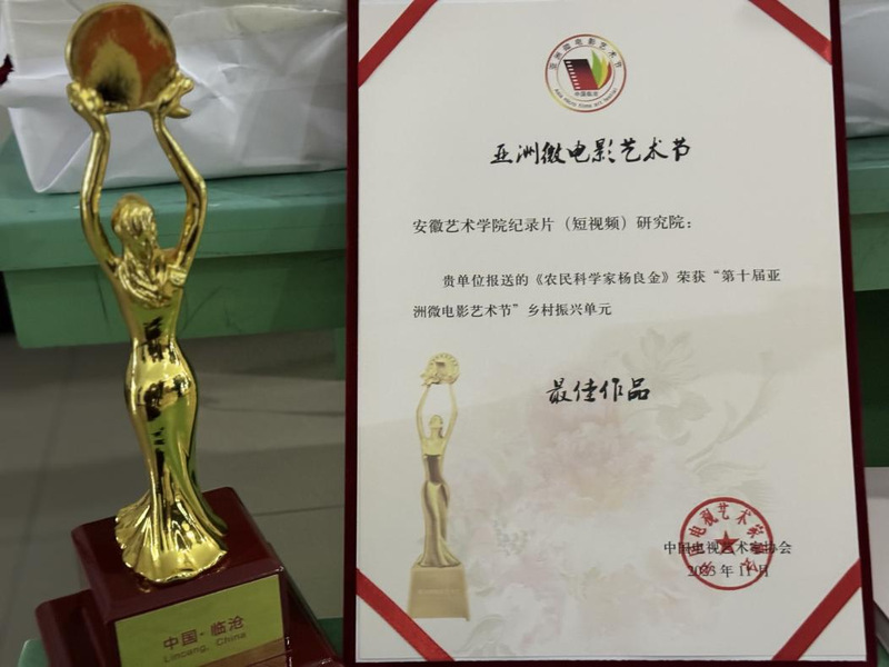 11月24—26日,由中国电视艺术家协会等单位主办的“第十届亚洲微电影艺术节”在云南省临沧市隆重举行。由纪录片(短视频)研究院制作、报送的《农民科学家杨良金》一作荣获乡村振兴单元最佳作品奖。
