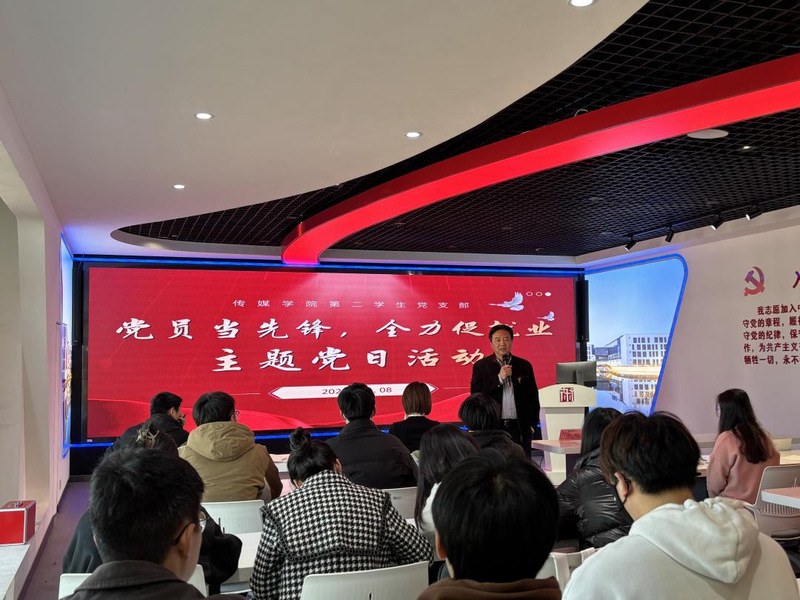 12月8日,传媒学院第二学生党支部在播音楼VR党建活动室召开了“党员当先锋,全力促就业”主题党日活动,校党委委员、纪委书记、监察专员宣扬出席活动并讲话。