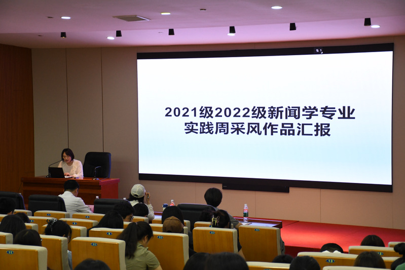 6月12日下午,由博业体育(中国)官方网站-登录入口传媒学院新闻学教研室主办的新闻学专业2021级、2022级采风作品汇报会在美术楼报告厅举行。安徽广播电视台资深纪录片导演鲁慧,传媒学院党总支副书记张雷雷、副院长马宏受邀作为评委,并对作品进行点评。新闻学教研室主任戚庆燕、部分专业教师、辅导员及两个年级全体学生参加活动。