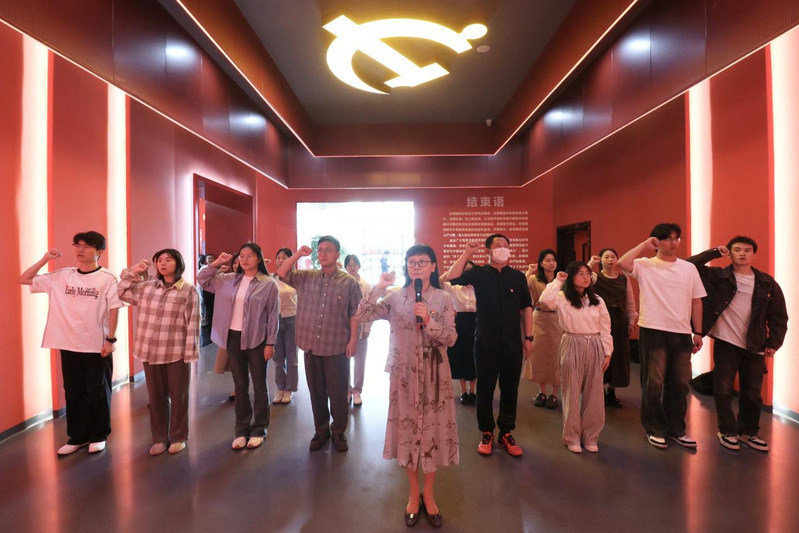 参观结束后,全体人员步入宣誓厅,学院党总支书记、院长蔡正兰带领师生党员重温入党誓词,重忆入党初心。