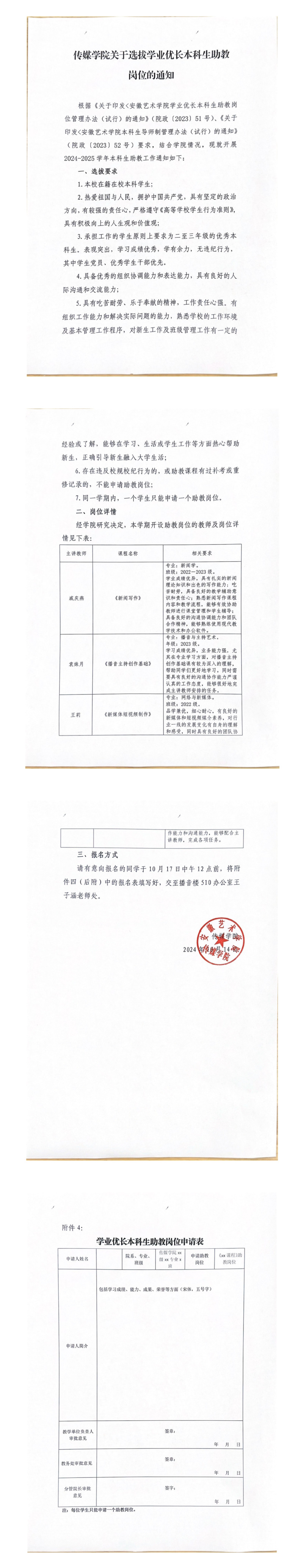 传媒学院关于选拔学业优长本科生助教 岗位的通知
