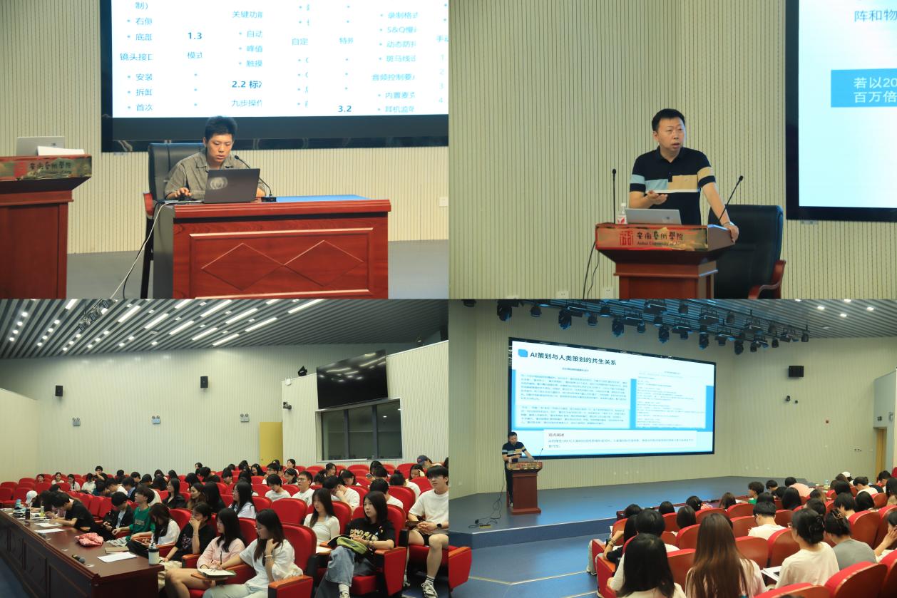 5月20日至23日,安徽广播电视台四位行业先锋带来四场前沿讲座。王泽坪、孙晔、韩刚、刘晨宇四位专家分别围绕AIGC技术应用、生成式AI技术图谱、AI在内容生产中的实践及时政传播破圈路径等话题展开分享。讲座现场气氛热烈,学生就AI工具应用、技术伦理等话题踊跃提问,专家结合案例进行解答,互动环节充满思辨与启发。