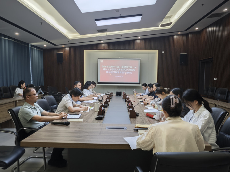 为进一步深化作风建设,落实全面从严治党要求,传媒学院于6月11日召开“深入贯彻中央八项规定精神学习教育专题交流研讨会”,旨在进一步强化青年干部、新提拔干部以及关键岗位干部的廉洁自律意识,筑牢思想防线。