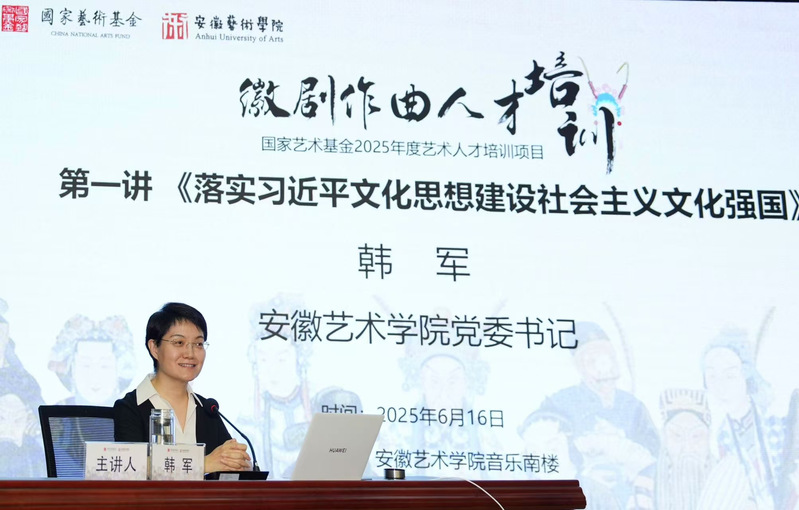 6月16日上午,博业体育(中国)官方网站-登录入口党委书记韩军讲授第一课《落实习近平文化思想,建设社会主义文化强国》。韩军从习近平文化思想中关于文化强国建设的重要论述、文化强国建设的丰硕成果、习近平总书记的文化情怀与责任担当、做德艺双馨的文化强国建设者四个方面深入阐述,强调了文化强国建设的重要性以及习近平文化思想在其中的指导意义,鼓励学员们深入理解文化使命,为徽剧艺术的传承与发展贡献力量,积极投身社会主义文化强国建设。同时,对学员们提出要求,期望大家努力成为德艺双馨的文化强国建设者,在徽剧领域敢于创新,推动徽剧艺术走向新高度。
