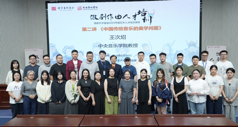 6月16日下午,中央音乐学院王次炤教授以《中国传统音乐的美学问题》为题。围绕“形态与观念共生”“美善合一审美观”“道家审美情趣”三大主题展开。王教授指出中国传统音乐美学植根于儒道哲学。儒家“天人合一”思想确立音乐的伦理功能,戏曲“润腔”技法即体现旋律与情感的融合;道家“物我同一”理念形成重意境、轻形式的特点。儒家通过《乐记》“声—音—乐”体系实现道德注入,形成“美善合一”传统;道家“情景相继”理论强化了音乐与自然的关联。授课揭示了中国传统音乐“以人为本,伦理为纲”美学特质,为徽剧创作提供了理论支撑。在全球化背景下,该人文关怀与伦理教化的美学传统,亟待创造性转化以焕发新活力。