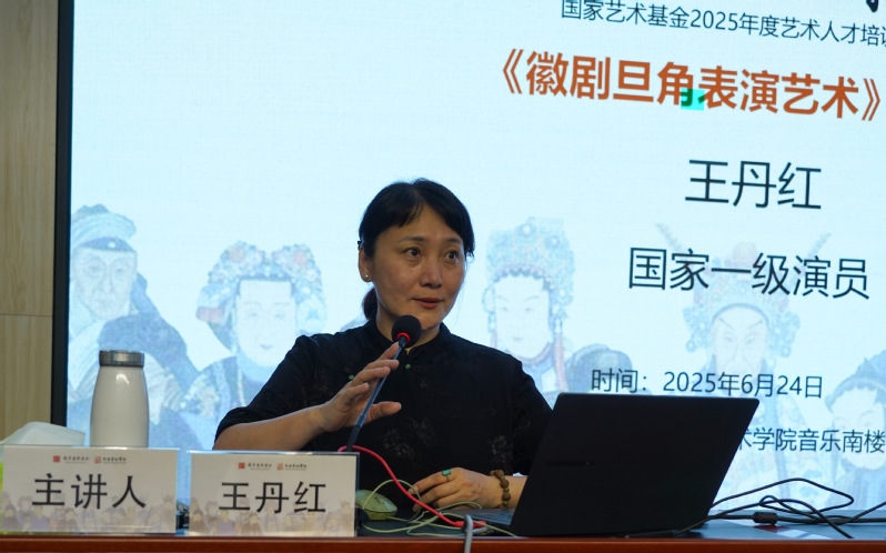 下午,安徽徽京剧院国家级非遗传承人、梅花奖获得者、一级演员王丹红讲授《徽剧旦角表演艺术》课程。