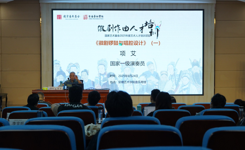 6月24日上午,安徽徽京剧院一级演奏员项艾就《徽剧锣鼓与唱腔设计》(一)展开教学。