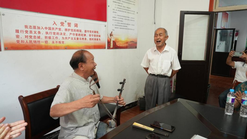 下午,调研座谈会在璜蔚村村委会举行。璜蔚村村书记与朱祝新共同参与,详细介绍了庆升徽剧团的发展历程,强调戏曲音乐需紧跟时代步伐、实现与时俱进的传承理念。座谈会上,庆升徽剧团成员与徽剧班学员展开了热烈的现场切磋,通过演唱、演奏等形式深入交流,围绕徽剧的唱腔处理、乐器搭配等细节展开讨论,碰撞出传承与创新的思想火花。