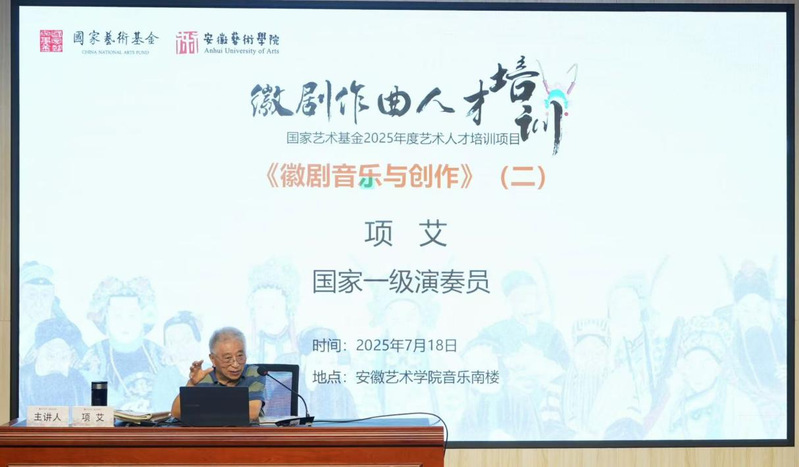7月18日上午,安徽省徽京剧院国家一级演奏员项艾主讲的《徽剧音乐与创作》(二)课程开讲。