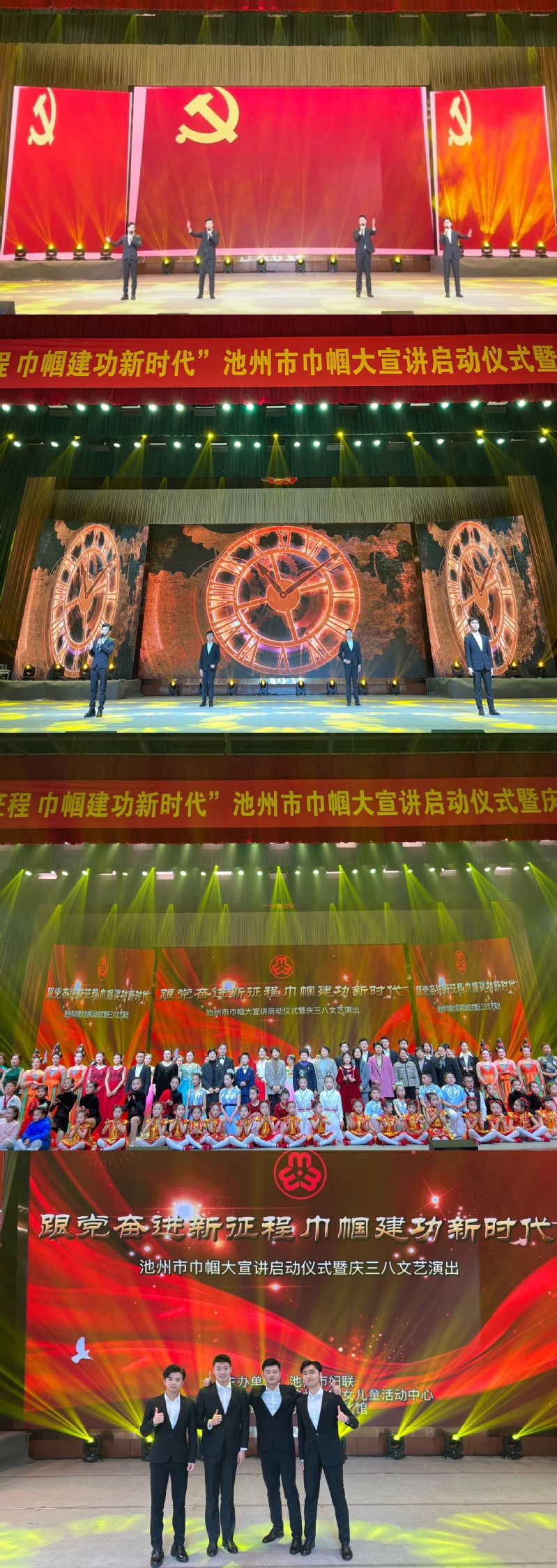 3月8日我中心带领新闻播音系四名学生前往池州妇联参加由池州市妇联主办,池州市妇女儿童活动中心承办的”跟党奋进新征程 巾帼建功新时代“池州市巾帼大宣讲启动仪式暨庆三八文艺演出活动。