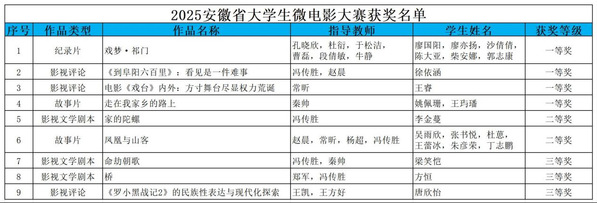 我校在2025年安徽省大学生微电影大赛中取得优异成绩