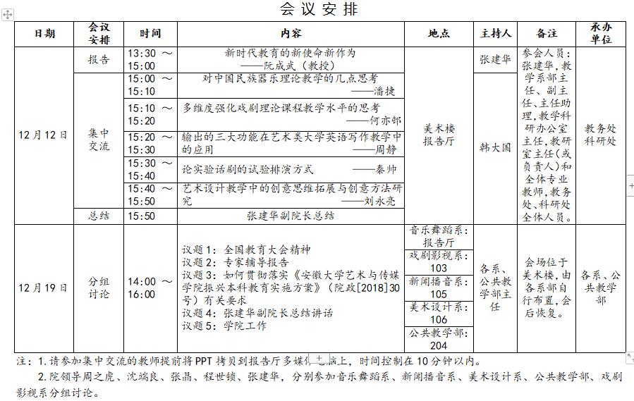 1.第三届教学学术研讨会于12月12日13:30在美术楼学术报告厅召开,由教务处、科研处承办,各教学系、部协办。