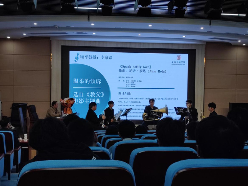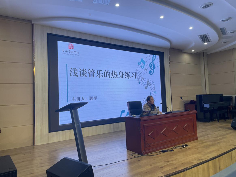 11月17号上午10点及下午2点,中国音乐家协会管乐学会理事,安徽省音乐家协会管乐专业委员会主任顾平教授,在音乐南楼报告厅分别举办“浅谈管乐的热身练习”讲座与管乐专家课。