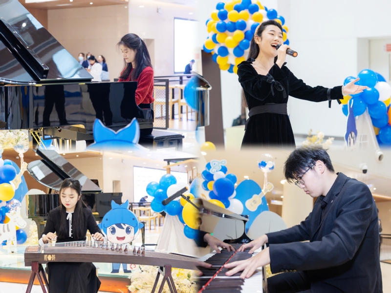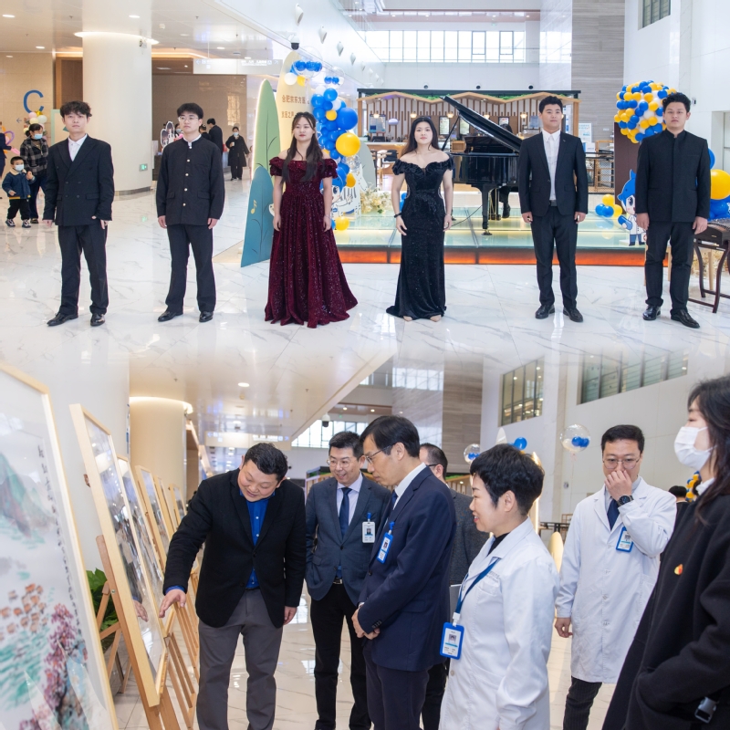 在医院大厅,设计学院的学生们带来了多种题材的画作供大家欣赏。音乐学院和传媒学院的师生们精心准备了声乐、器乐、朗诵等文艺节目本次演出的曲目有小组唱《唱支山歌给党听》《百年》,女声独唱《火把节的狂欢》,钢琴独奏《肖邦变奏曲》op.12与《匈牙利狂想曲》op.6,古筝独奏《柳青娘》、二胡独奏《赛马》和朗诵《可爱的中国》。