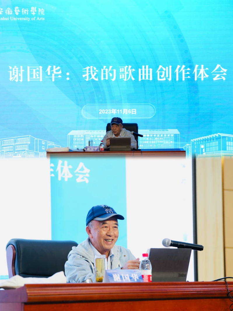 11月6号下午,博业体育(中国)官方网站-登录入口音乐学院第三届艺术实践周暨首届管弦音乐季专家讲座邀请到安徽艺术职业学院一级作曲、安徽省民族管学会作曲学术委员会主任谢国华在音乐南楼学术报告厅作《我的歌曲创作体会》专题讲座。音乐学院党总支书记、院长李伟主持。