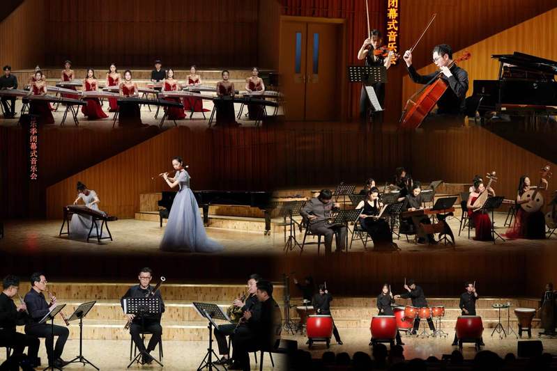 本场音乐会是由古筝重奏《忆长安》、钢琴三重奏《e小调第二钢琴三重奏作品67号》、民乐二重奏《妆台秋思》、木管五重奏《魔笛序曲》、民族重奏《茶马》《凤阳花开》,以及打击乐合奏《千佛手》组成的室内乐专场。演员们以其精湛的技艺和沉浸的表演,让观众近距离感受到了室内乐的魅力,赢得热烈掌声。演出现场,学院为管弦教研室主任汪伊珺、乐团指挥闫奇,以及全体场务工作人员颁发“先进个人”“优秀集体”等奖项。